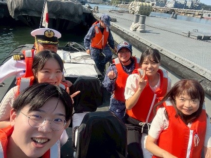合同授業終了後、竹村・松園ゼミの皆さまには、海上自衛隊横須賀基地での高速機動艇による港内クルーズと基地内見学、米海軍横須賀基地オフィサーズクラブでの懇親会と楽しいひと時を過ごしていただきました。
