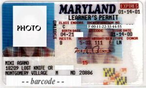 Learner's Permit2回目の筆記試験を合格して取得したメリーランド州の仮免許。ちなみに私(旦那)は3回目で筆記試験に合格した。。。。重要な部分と見るに耐えない部分は隠してます。あしからず。