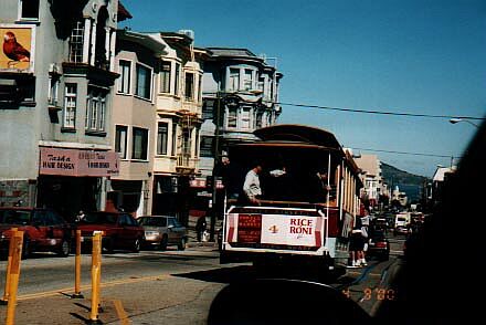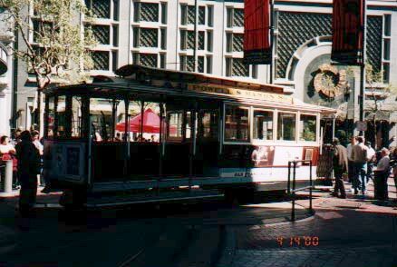 ケーブルカーサンフランシスコ名物、ちんちん電車。終点のフィッシャーズマンズワーフにて。