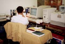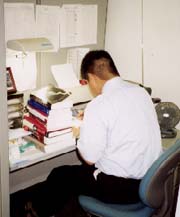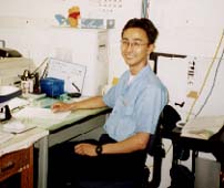次へ >><< 戻る 【報告-第12回】 2000年7月12日掲載 ~ 静かなる戦場 ~ - 殺気だつ学内 - 7月。カレンダーは折り返しに入りました。 現実の国際政治は、このところ台湾の新政権発足(5月)、 朝鮮半島の南北首脳会談実現(6月)など激動が続いています。 でも、私たち総合安全保障研究科の学生は、アジア安全保障のうねりが気になりながらも、 目先の論文のことで手一杯です。 進みぐあいにも個人差が出てきました。 すでに大量の資料を集めて論文を書きだした人、「理論か、歴史か」などと分析手法と格闘している人、 まだ全体構想そのものが定まらずに悩んでいる人など、さまざまです。 自習室で机に向かう同級生からは殺気も 学校で交わす会話の話題も、がらりと変わりました。 「どのくらい進んでいます?」「いい理論みつけましたよ」 「この資料どこで探せばいいんでしょう」……。 テレビ番組や休みの過ごし方なんかを気軽に話していた頃が、 なつかしく思われます。口を開けば、だれもが「忙しい」の繰り返しです。 自習室で机に向かう同級生の後ろ姿には、殺気さえ感じられます。 声をかけるのがはばかられるほどです。 両わきに和洋の文献をうずたかく積み上げ、メモを取ったり、パソコンをたたいたり。 「ふーっ」と漏れる深いため息、せわしなく本のページを繰る音、 自席と図書館をあわただしく往復する足音……。 自習室は、さながら「静かなる戦場」です。 - 「惨敗」の日 - 前回ご紹介したプロジェクト科目の発表当番が、6月中旬に回ってきました。 私が属するグループは「アメリカの政戦略」がテーマです。 学生5人を教官4人が指導してくださいます。 今回の課題は、「先行研究のレビュー・エッセーをまとめよ」 修論執筆に利用される端末室は資料の山 私の修論テーマは「日米同盟のコストとベネフィット」ですが、 この時点では、まだおおざっぱな構想の段階で、具体的な分析手法までは定まっていませんでした。 発表では、ひとまず、日米安保体制について書かれた 4つの先行研究の比較・分析を通して、自分の研究の方向性を示す内容にしてみました。 レポートをもとに説明後、教官から批判や意見をいただきました。 一番手厳しかったのは、わが指導教官の田所昌幸教授の指摘でした。 「あなたは、まだ学術論文のことがよくわかっていない」。 他の先生方の評価も惨たんたるものでした。 ここでは、社会科学の学術論文が いかに資料や論理を重視するものであるか、 客観的な文章を正確に書くことがいかに難しいか、ということを徹底してたたき込まれます。 本格的な作業を前にした、いわば洗礼のようなものです。 大学時代の学士論文に比べ、修士論文はレベルが違います。 私がもらった指摘の数々は、要約すると次のようなものでした。 (1)あいまいな用語の使い方が多い。 例えば、「相互性」「双務性」と「対等性」という概念は明らかに異質ではないか。 (2)日米関係について、日本が合理的な選択ができたかのように考えているが、 むしろ選択の余地がない権力関係ではなかっただろうか。前提自体を再検討すべき。 (3)方法論である分析枠組みがはっきりしていない。 どんな理論を使って日米関係を論じるのかが、明確ではない。 (4)政策決定者レベルでコストやベネフィットを論じるときに、 彼らは大事なものは隠して表に出さないという傾向がある。 公表資料から、それをうまく引き出せるだろうか。 (5)コストとベネフィットというが、認識の問題としてとらえるのか、 それとも実質のものとしてとらえるのかがあいまい。 また、コストに着目するというが、学術論文では基地を抱えれば国民の負担があるのは当たり前、 と言われかねない。justificationが必要。 次の作業は、分析の対象や手法の絞り込みです。 同盟のコストやベネフィットとは何か。 それらの概念を自分なりに規定し、どういう時期のどの資料を使って、何を導き出すのか。 悩ましい日々が続きます。 - ロケットのプロ・・・民間からの同期生 - 防衛大学校の大学院課程には、私たちの総合安全保障研究科(1学年約20人)とは別に、 40年近い歴史をもつ「理工学研究科」があります。 1学年約90人の学生が、2年にわたり電子、機械、航空宇宙工学など幅広い技術分野の研究をしています。 この課程も、民間に門戸を開いており、私と同じように部外から学びに来ている方が何人かいます。 そのおひとり「日本油脂」の早川茂之さんは、私と同期生にあたります。 - ●早川茂之さんインタビュー● - 私は日本油脂という化学メーカーから、受託教育の形で、 昨年から防大の理工学研究科にお世話になっております。 同じ「民間組」の理工学研究科・早川茂之さん 愛知県にある私の所属する工場では、ロケット用の固体推進薬 (H-2ロケットの固体ロケットブースターや、M-Vロケットなど使われている固体燃料) を製造しておりまして、その関係からこちらでも固体推進薬の燃焼に関する基礎研究をしていま