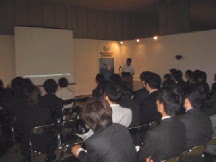 ![]() 学生フォーラム司会者 東京電機大学大学院 博士課程 大嶽さんと激論中!?