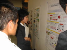 ![]() 金沢工業大学の女子学生の 説明に、いつもより余計真剣に 耳を傾ける飯山ん!!